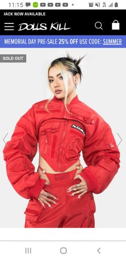 Namilia Red Nylon Bomber Choker Jacket Dollskill Size Small$40Fontana, CA
