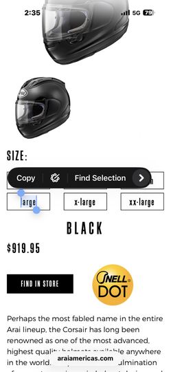 Arai Corsair X Motorcycle Helmet Size Large$600Palmdale, CA