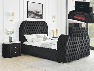 New Velvet Tufted Black Bed With Fireplace Display / TV Stand. Free Delivery!$1,200Ventura, CA
