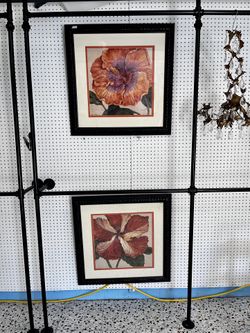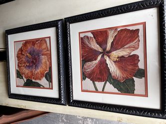 Pair Judy Shelby framed flower print Mum Hibiscus $50Oakland Park, FL