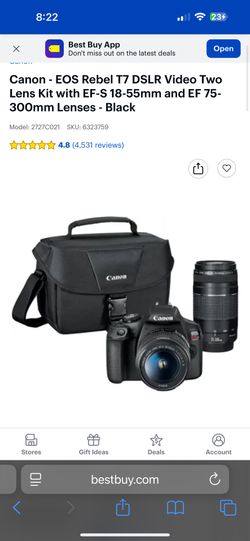 EOS Rebel T7 DSLR Video Two Lens Kit with EF-S 18-55mm and EF 75-300mm Lenses - Black $500San Diego, CA