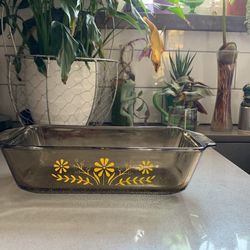 Smoked Brown Baking, Yellow Flowers Rectangle Dish with Textured Bottom $20Newark, CA