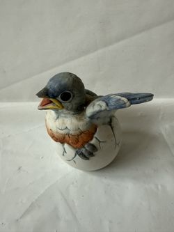 Vintage Andrea by Sadek 1990 Porcelain Baby Bluebird Figurine Hatching From an Egg$20Roseville, CA