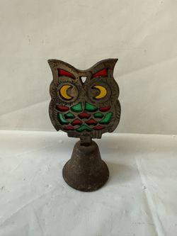 Vintage Owl Shaped Stained Glass Sun Catcher Cast Iron Bell $10Roseville, CA