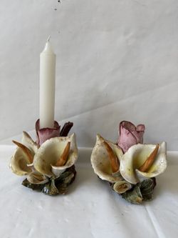 Pair of Vintage Italian Bassano Porcelain Candle Holders Featuring Calla Lilies and Roses$85Roseville, CA