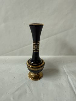 Vintage Black Greek Ceramic Bud Vase with Gold Accents $15Roseville, CA