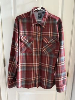 Men’s Volcom Long Sleeve Red and Gray Plaid Snap Up Flannel Shirt - Size Large $30Rocklin, CA