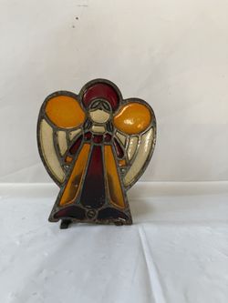 Vintage Stain Glass Sun Catcher Cast Iron Angel Votive/Tea Light Holder $15Roseville, CA
