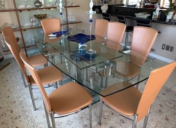 Full Glass Dining Room Table and 8 Leather Chairs$850Palm Desert, CA