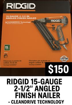 π RIDGID 15-Gauge 2-1/2β³ Angled Finish Nailer β CleanDrive Technology$150Decatur, GA