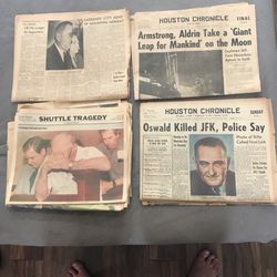 1963 Kennedy 1969 Moon 1986 Challenger Houston Newspapers$100Houston, TX