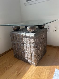 Postmodern Natural Mactan Stone Sofa Table With Glass Top $300Tacoma, WA