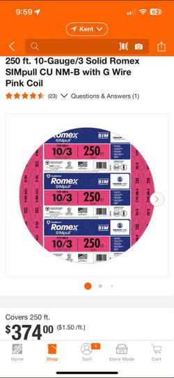 250 ft. 10-Gauge/3 Solid Romex SIMpull CU NM-B with G Wire Pink Coil$299Kent, WA
