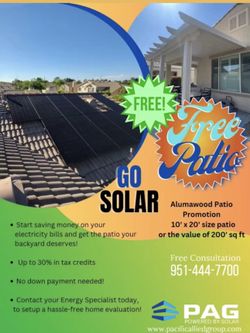 Patio For Free If You Go Solar $100Corona, CA