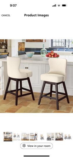 Counter Height Bar Stools Set of 2, 26" H Swivel Bar Stool with Back, Linen Fabric Counter Stool, Solid Wood Legs, Retro Upholstered Barstools for Kit$130Bloomington, CA