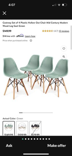 Costway Set of 4 Plastic Hollow Out Chair Mid Century Modern Wood-Leg Seat Green$100Bloomington, CA