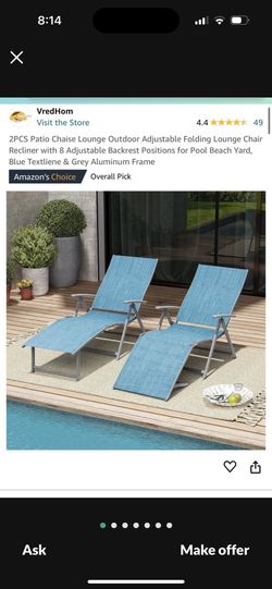 2PCS Patio Chaise Lounge Outdoor Adjustable Folding Lounge Chair Recliner with 8 Adjustable Backrest Positions for Pool Beach Yard, Blue Textliene & G$80Bloomington, CA