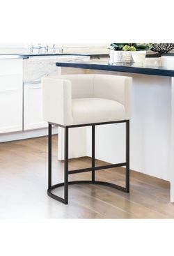 LUE BONA 27" H Counter Height Bar Stools Set of 2, Modern Barrel Counter Stools with Backrest and Arms, Black Metal Frames, Linen Fabric Upholstered A$150Bloomington, CA