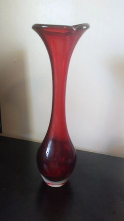 Vintage Mid-century Ruby Red Blown Glass Vase 16 1/2"$15Fort Pierce, FL