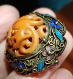 1920? Chinese Vintage (Auction Item) Silver Stamped, Natural Orange Coral, Hand Painted Brooch$180Katy, TX