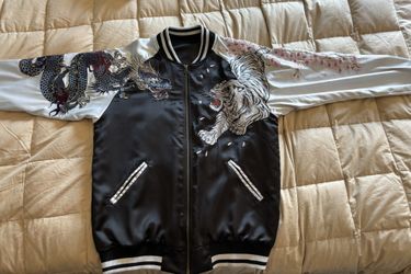 Reversible Embroidered Sukajan Bomber Jacket – Tiger, Dragon & Phoenix Design (Black/Silver Satin)$250Richmond, CA