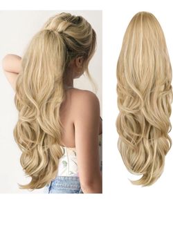 Blonde Ponytail Extension, Drawstring Ponytail Extension for Women 26 Inch Long Wavy Highlights Pony Tails Hair Extensions Synthetic Clip in Ponytail $15Lancaster, CA
