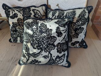 Set Of 3 Linen And Black Cut Velvet 24" Square Floral Pillow Or Cushions$125Solana Beach, CA