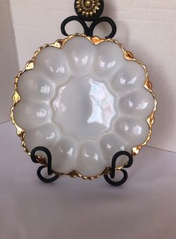 ANCHOR HOCKING MILK GLASS WITH GOLD ACCENT DEVILED EGG PLATE $11Bakersfield, CA