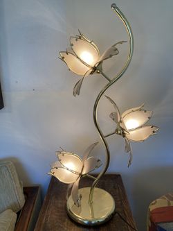 Vintage Brass Pink Shaded Glass Lotus Table Lamp$300Seattle, WA