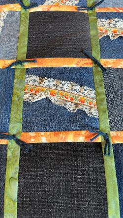 Mini Lap Quilt 23x23 Inches Denim And Lace , Ready To Go Gift, Fall Colors, Fleece Backing, Baby Changing Pad, Table Topper, Multi Use$25Las Vegas, NV
