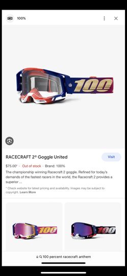 RACECRAFT 2 Goggle united$50Jurupa Valley, CA