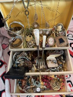 Jewelry Box Of Costume Jewelry Plus Mother Of Pearl Forks Plus More Items $200Shady Shores, TX