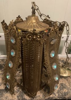 Beautiful Vintage Turkish Style Brass Colored Metal Hanging Light Fixture Lamp $250New Paltz, NY