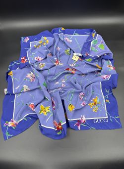 GUCCI RARE VINTAGE NWT / Sky Blue “Flora” SILK SCARF 35” x 35” NEW 1970’s Tag$200El Cajon, CA
