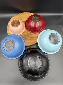 Vintage Clear Bottom Pyrex Nesting Bowls Lot of 5 Black Red Pink Moody Blues$140El Cajon, CA