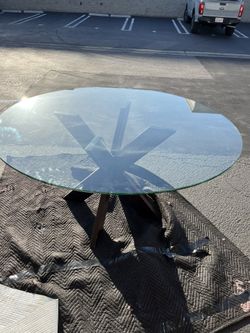 Mid Century-60’s Dining Table, Very Solid(thick) Glass Table On 3 Dimensional X$305Torrance, CA