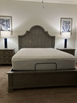 Queen Bed And Bed Frame With 2 End Tables With Ease Remote Electric Bed Base$950Tulare, CA