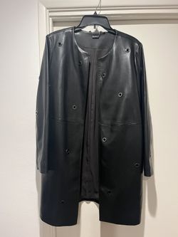 REDUCED!!Women’s Overcoat-like New! Shiny Black Pleather W/circle Rivets$10Huntington Beach, CA