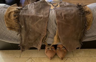 Antique cowboy leather batwing chaps with fringe and embossed logo$600Irvine, CA