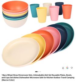 18pc Wheat Straw Dinnerware Set - Plates Bowls Cups Macaron Colors$25Sacramento, CA