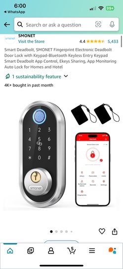 SMART DEADBOLT, SMONET FINGERPRINT ELETRONIC$70San Diego, CA