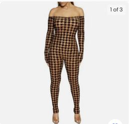 Naked Wardrobe Off Shoulder Jumpsuit Houndstooth $80Visalia, CA