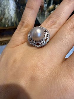 14K white gold 10.5mm pearl and natural diamonds gorgeous Ring$995Seal Beach, CA