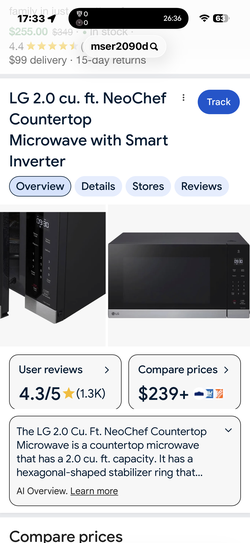 LG 2.0 cu. ft. NeoChef Countertop Microwave with Smart Inverter$200Nashville, TN