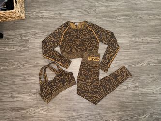 Echt 3 Piece sports bra, Shirt & Leggings Activewear Athletic Gym Brown Camo Set$50Santa Clarita, CA