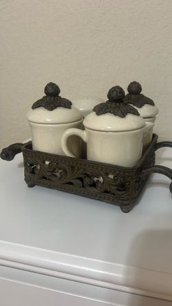 Decorative Creamer, Sugar Bowl, Condiment Jar With Metal Carrying Tray$15Oldsmar, FL