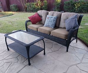 Black Wicker Rattan Patio Sofa and Coffee Table Set$180Dallas, TX