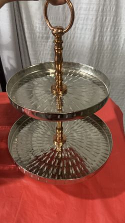 NEW 2Tiered Tray Stand, 2 Tier Decorative Serving Tray, Metal Rose Gold Display Tray Round$15Everett, WA