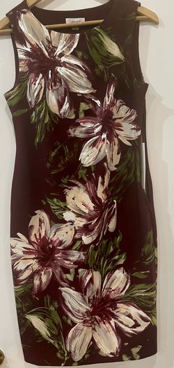 floral-print scuba crepe sheath dress in a purple/aubergine multi-color pattern. $65Chino Hills, CA