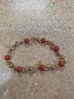 18k Yellow Gold Red Coral Gemstone Bracelet 7.5"$1,095Wethersfield, CT